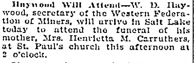 Born in Salt Lake City in 1869, Bill would become one of the most important figures in Labor History.