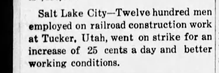 “Backbone of Tucker Strike is Broken.” Salt Lake Telegram. June 13, 1913.